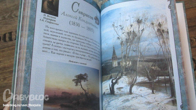 тоже мои любимые книги. Да, они уже больше похожи на энциклопедии, но все равно сделаны очень хорошо и цена оправдана. Книга большая, картинки большие. Мы со Степокй перед сном дневным иногда рассматриваем их. Много художников, самые яркие их работы.