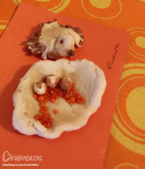 Это типа гнездо и птица высиживает яйца ) Ник все лепил сам и вот что получилось ...
