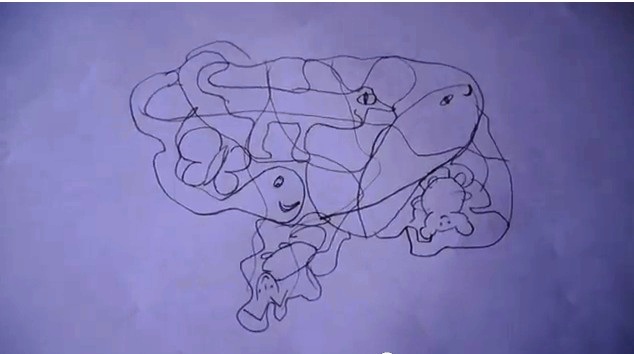Я схематично изображаю знакомых животных (или предметы), накладываю на них некое подобие сетки, а Катя должна их отыскать.