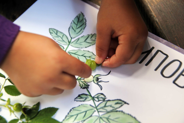Я нарисовала ветку шиповника, раскрашивать Настя не стала, поручила это мне сделать, а она тем временем изучала сам плод шиповника....