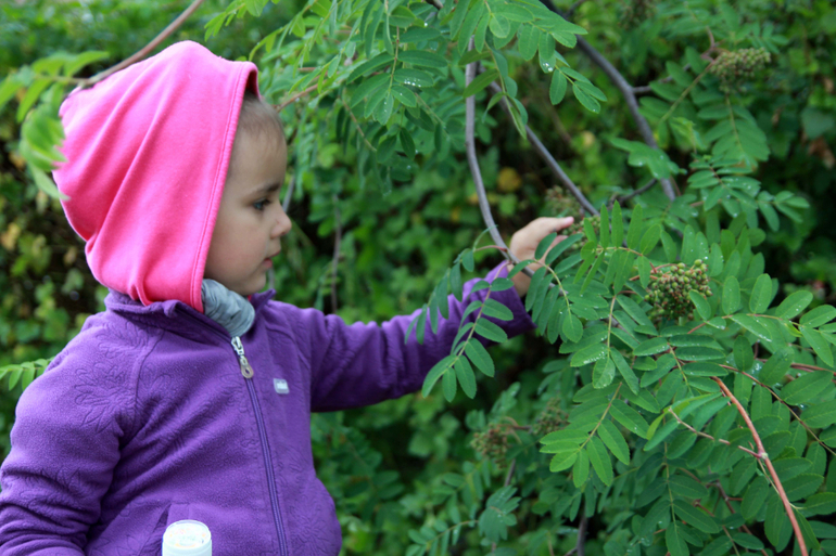 На этот раз мы сорвали веточку рябины, чтобы поближе рассмотреть листики и ягодки))