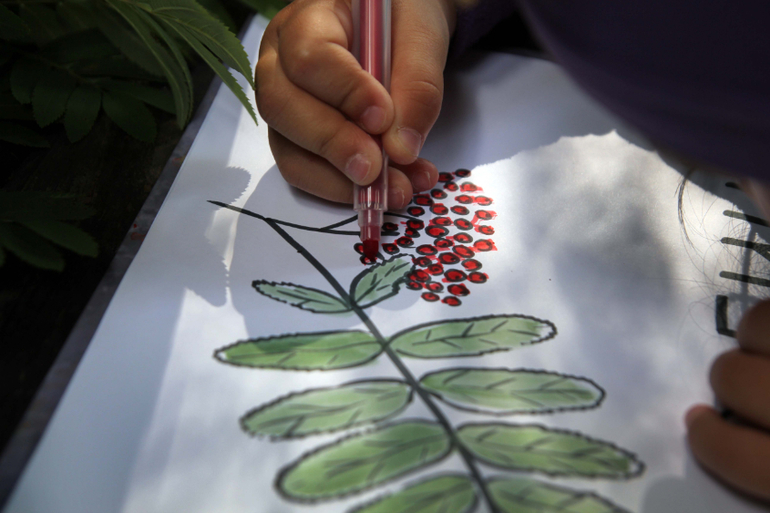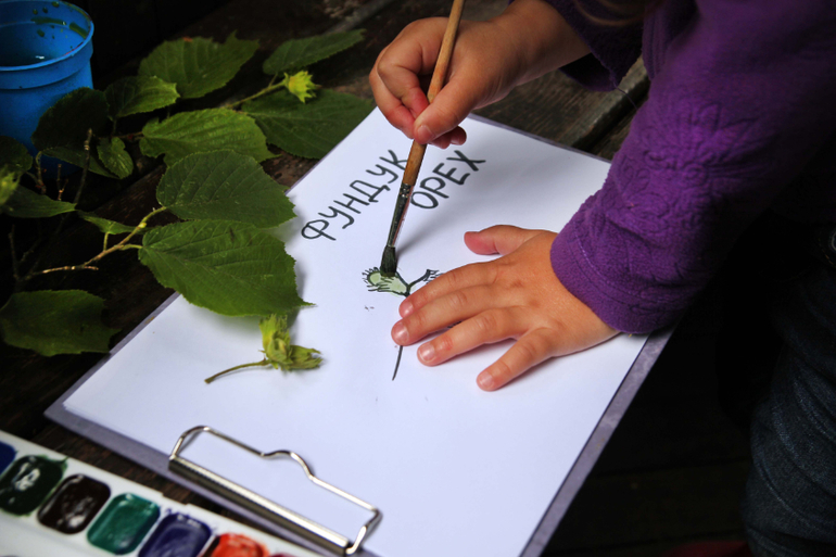 Настя дала мне задание раскрасить листочки, а она будет ягодки ракрашивать!