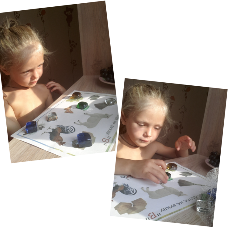 Выбор пал на букву "В". Аня ее иногда путает с "Б". Со всеми остальными все в порядке, кроме последних "Ч", "Ш", "Щ", "Ц" и "Х", все другие буквы помнит и не путает.