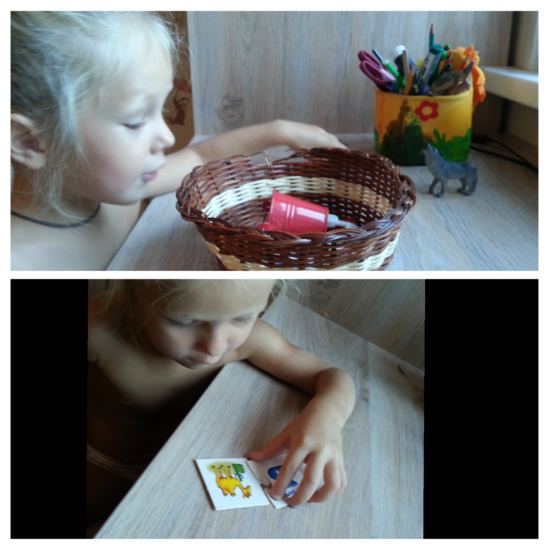Начали мы с корзинки, в которой были предметы, начинающиеся на изучаемую букву.