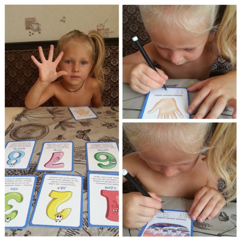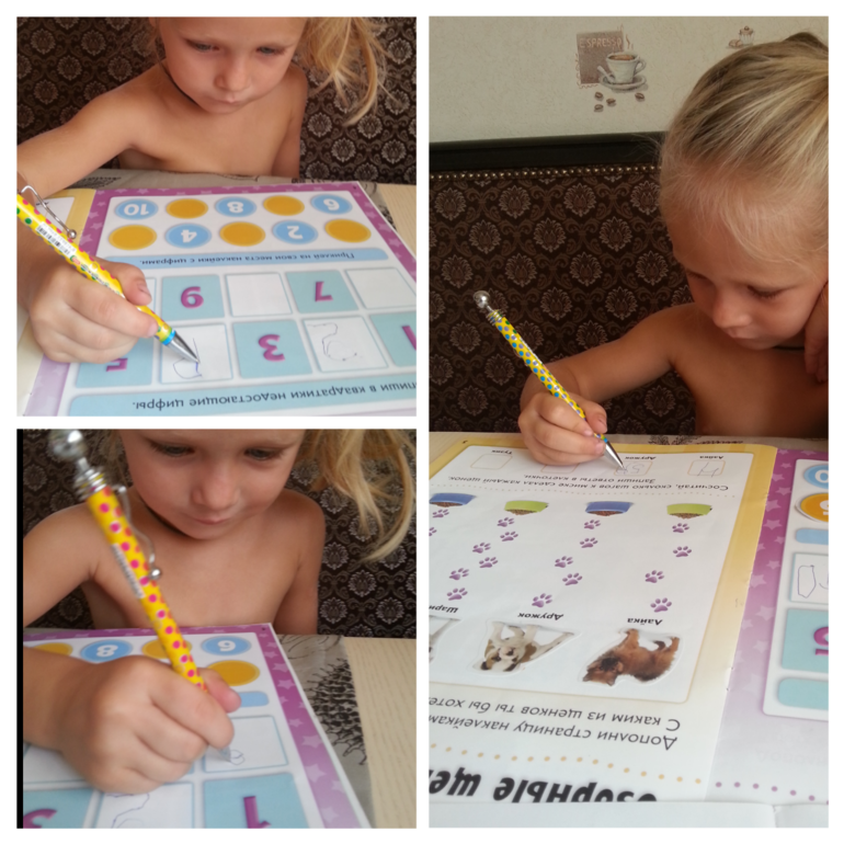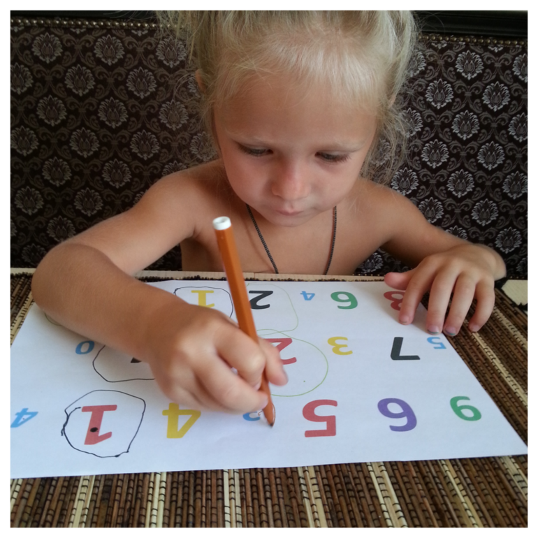 Здесь Анюта обводит ту цифру, которую я назвала. Путает 6 с 9.