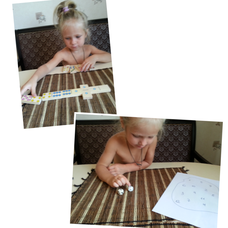 Играли в домино и в кубики (кто быстрее закроет цифры в карточке).