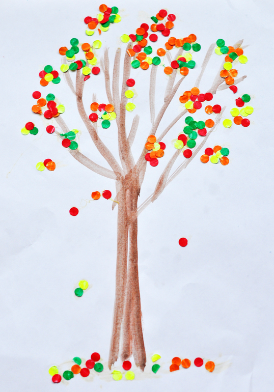 Дерево из цветного конфетти. Конфетти сделали дыроколом, но можно и готовые купить.