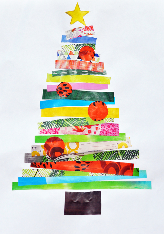 И из бумаги тоже. Елка из полосок, вырезанных из какого-то журнала.