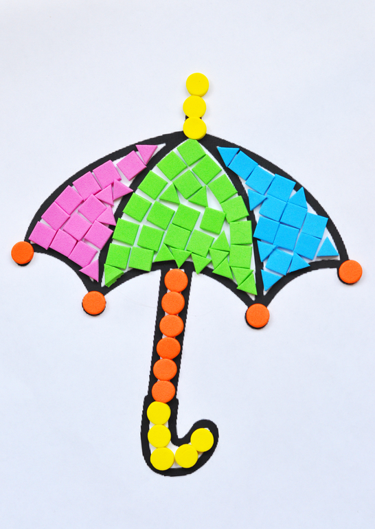 Еще мы делали аппликации из вспененного материала ЭВА. Я распечатывала контур, а Тима наклеивал кусочки мозаики.
