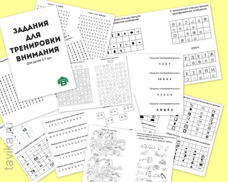 Я подготовила сборник заданий на тренировку внимания для детей 5-7 лет. В нем 20 страниц упражнений, выполняя которые, ребенок учится управлять своим вниманием, долгое время удерживать его фокус на нужном занятии, и учится произвольно переключать внимание между двумя заданиями.
