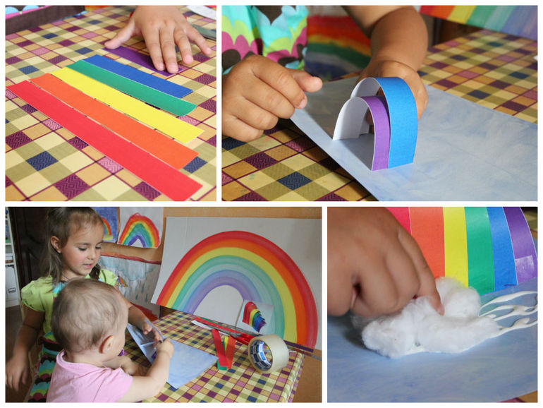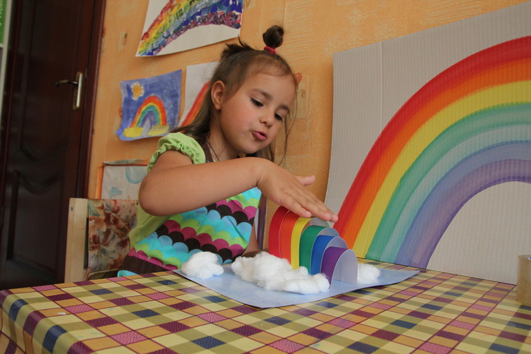 Сейчас, когда за окном все серое и мокрое, особенно приятно вспомнить как мы с дочкой Анастасией (4г.8м.) рисовали, клеили, собирали и т.д. РАДУГУ!!!