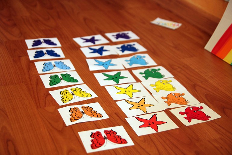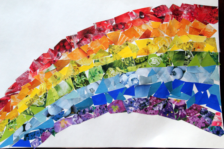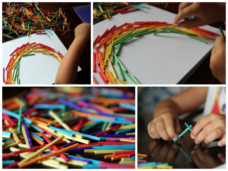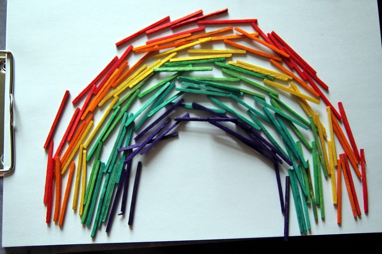 Из маленьких цветных палочек (размер со спичку) собирали радугу: