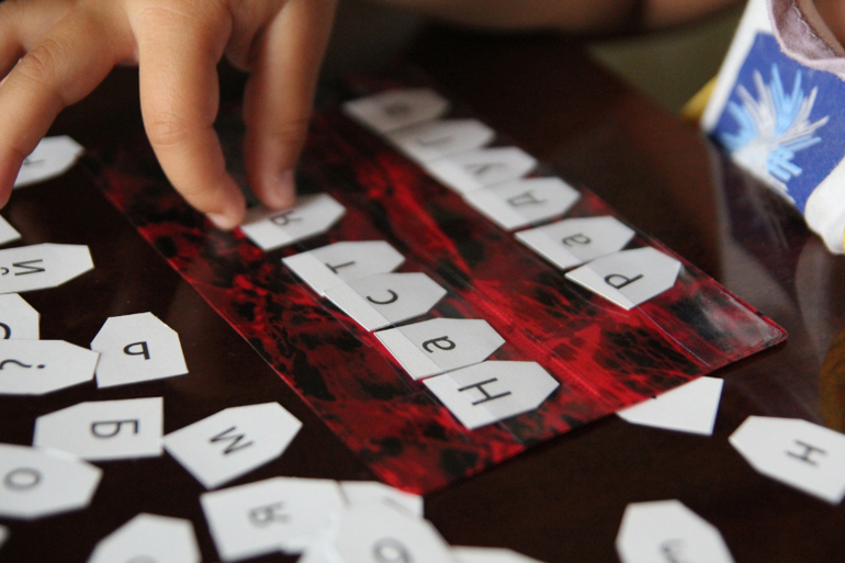 Настя увидела у меня в коробке кассу букв и цифр, спросила что это такое... Показала, рассказала..