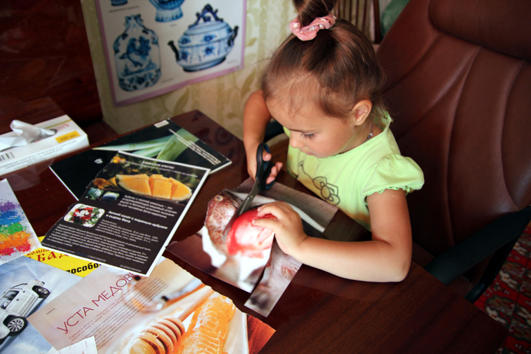 Далее аппликация, по типу мозаики. Для начала мы искали нужные нам цвета во всяких ненужных журналах.