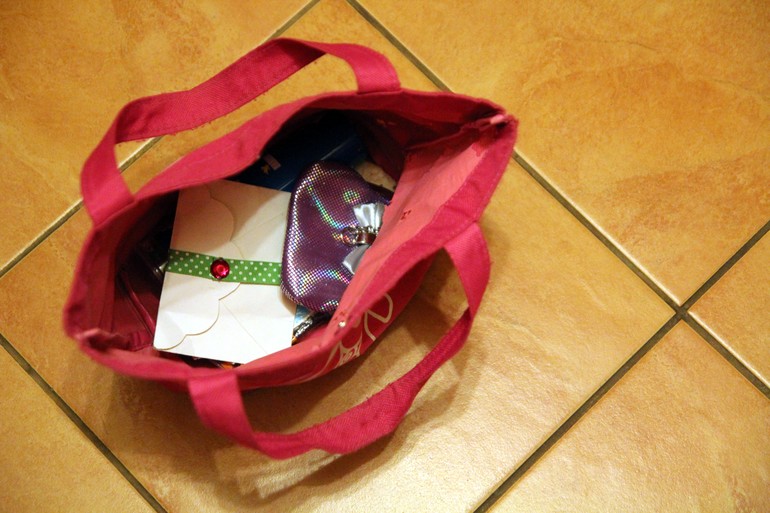 Отредактировала: Добавила фото на сегодняшний момент, в сумочке обычно платочки бумажные, кошелек, радуга в конвертике и последние пару дней калейдоскоп, а если сумку не берет с собой в сад, радугу кладет в карман куртки.