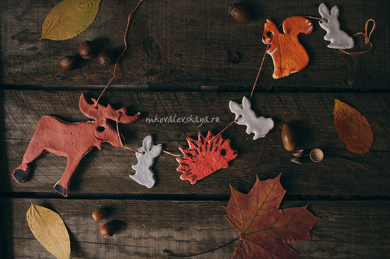 Осенние поделки с ребенком - гирлянда из соленого теста