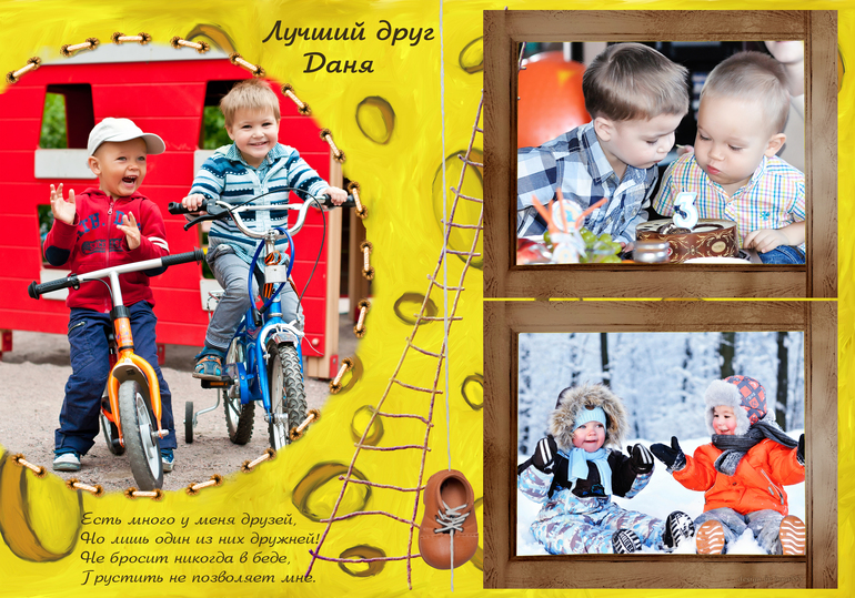 Не успели мы выйти с больничного, как в саду воспитатели накинулись на меня с просьбой срочно сделать «Герб семьи» и «Альбом нашей семьи»! У меня, честно говоря, челюсть отвисла от таких просьб! Я сказала, что слабо представляю себе как должен выглядеть семейный альбом для сада и тем более семейный герб! Воспитатели видно и сами не в курсе, т.к. примеров гербов у них не оказалось, а на мою просьбу показать хотя бы альбом - вынесли какую-то потрепанную папку с наспех наклеенными фотографиями и подписями к ним аж на 4!листах А4)))Пошла я домой, озадаченная на всю неделю вперед, про себя думая, что может они про все это «добро» забудут в ближайшее время и делать ничего не придется. Не тут-то было(((. Делать пришлось! Хотелось чего-то необычного и оригинального - пусть теперь у них челюсть отвисает))). Вот мой «шедевр», альбом в макете, завтра отправлю на печать. Герб еще в процессе разработки, поэтому фото пока нет.