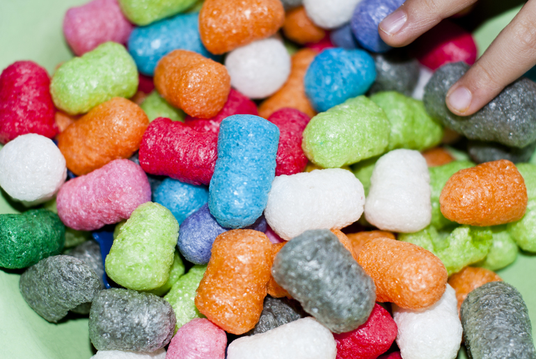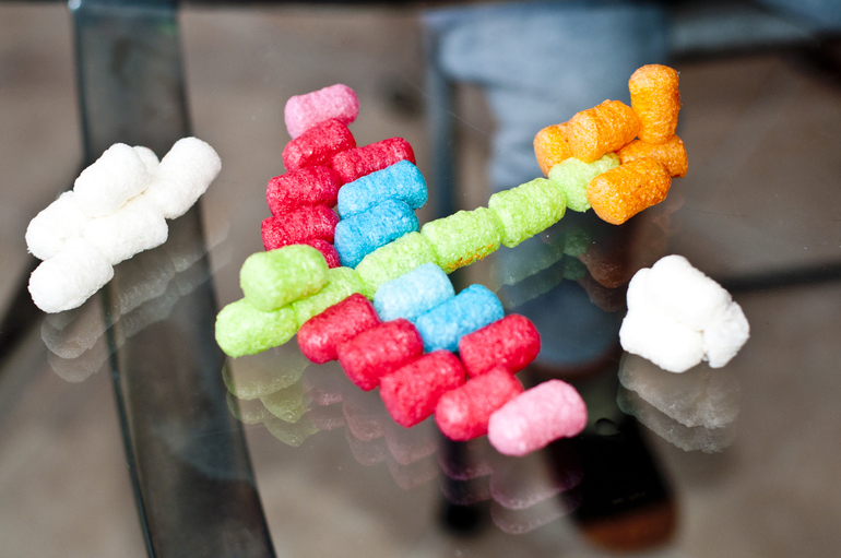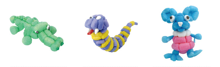 Почитав информацию на коробке, я поняла, что это - конструктор из кукурузы, точнее, из кукурузной муки с добавлением пищевых красителей! Для составления поделок необходимо лишь промокнуть детали влажной губкой, которая входит в комплект, и соединить вместе. Клей не нужен! Детали конструктора можно разрезать, сплющивать, вырезать элементы любой формы, составлять объемные и двухмерные композиции, в том числе на бумаге и картоне с помощью специально разработанных трафаретов, а также декорировать его элементами гладкие поверхности.
