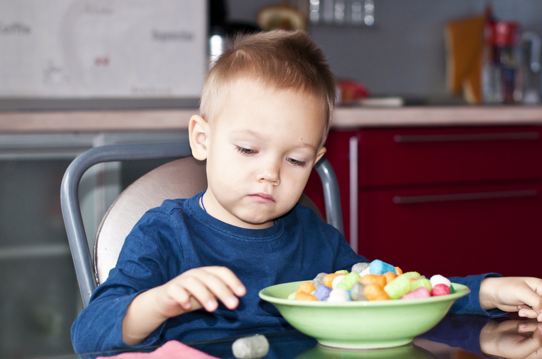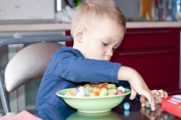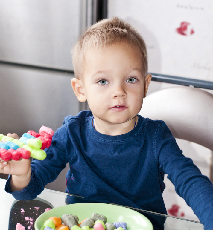 Потом Тимоша вошел в азарт и попросил нож! Я дала, а он начал кромсать кукурузины, лепить разноцветные комки из крошек, пока в тарелке ничего не осталось. Этот варварский процесс я не стала фотографировать)
