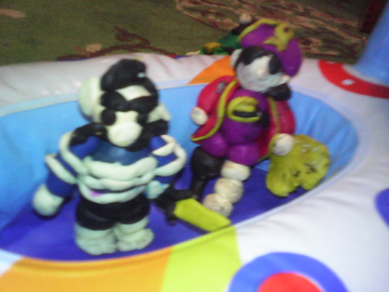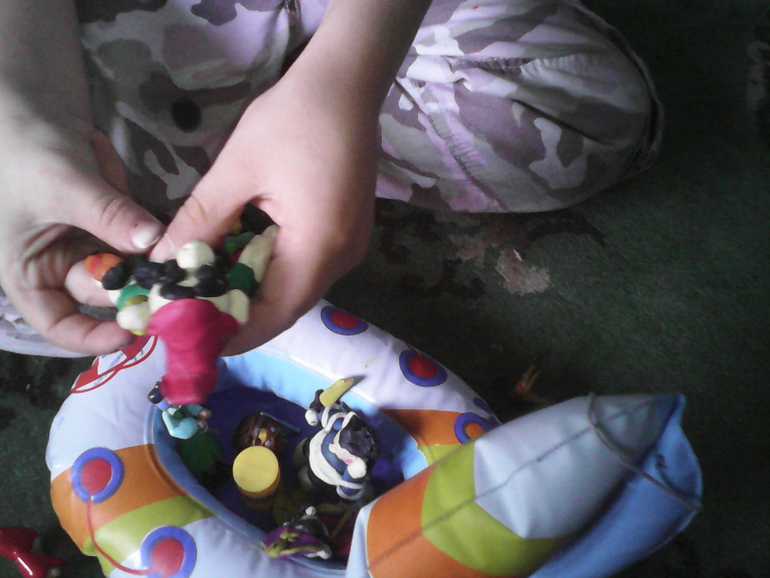 ТворчествоМоему сынуле недавно исполнилось 5 лет. Он и до этого интересовался пиратами, но сейчас он просто завис на этой теме. И так у нас сейчас любимый мультик "Остров сокровищ". Играть в пиратов он тоже любит.Знает песню пиратов и даже знает как звали легендарного пирата по прозвищу "Черная Борода". И вот недавно в магазине "Школа семи гномов" я купила книжечку о том, как лепить пиратов из массы для лепки. Но мы использовали пластилин "Кроха". Мне понравился он тем, что не засыхает, в отличие от массы. И вот что у нас получилось: сынуля вылепил трех пиратов(с моей помощью в мелких деталях), сундук с золотом и пушку. На пиратский корабль нам не хватило сил и пластилина. Далее фото: