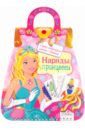 Сумочка раскрывается на манер тетради, внутри есть 2 пластиковых трафарета для нарядов, и очень-очень много листиков-"тканей", на которые эти трафаретики можно накладывать и вырезать платья. Контуры простые, так что с вырезанием справится даже 3,5- 4-х летний ребёнок, если ему поможет с трафаретом мама. Дочка в 5 лет уже всё делает здесь совершенно самостоятельно - выбирает "ткань", украшает наклеечками (отдельно идут листы наклеечек с туфельками, волшебными палочками, украшениями, и пр.).
