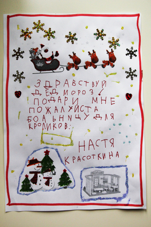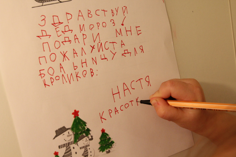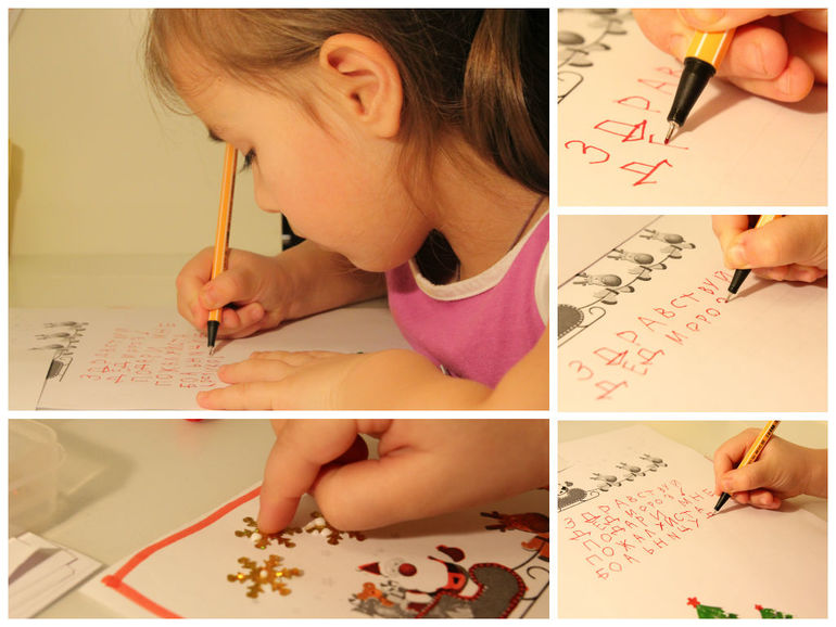 В прошлом году Настенька обводила написанный мною (карандашом) текст письма, в этом писала сама, точнее "списывала"