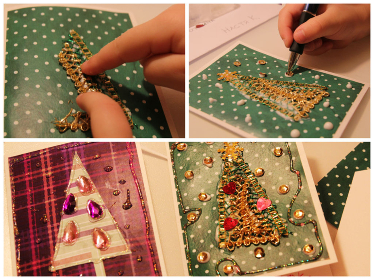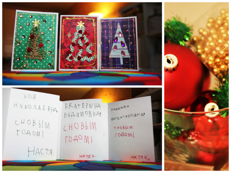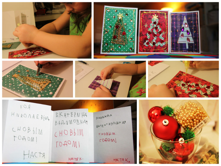 5 лет) сделали открытки для наших воспитателей и логопеда к Новому году. Настя почти каждый день просит меня - "Мам, давай какое-нибудь творчество поделаем?!!!" или "... я хочу что то поделать с тобой, ...руками!"А ТУТ Открытки на НГ воспитателям в прошлом году