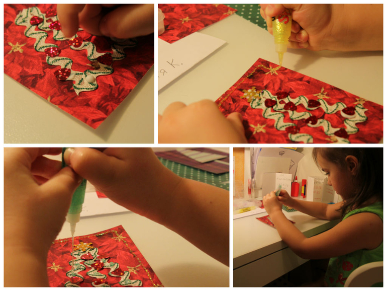 5 лет) сделали открытки для наших воспитателей и логопеда к Новому году. Настя почти каждый день просит меня - "Мам, давай какое-нибудь творчество поделаем?!!!" или "... я хочу что то поделать с тобой, ...руками!"