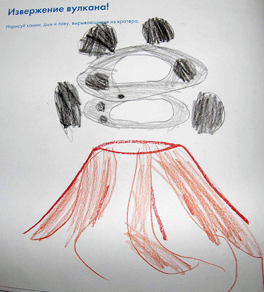 В первой предоставляется возможность ребенку дорисовывать начатые картинки. Например, дорисовать полоски зебре или изобразить извержение вулкана.