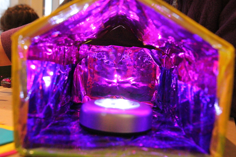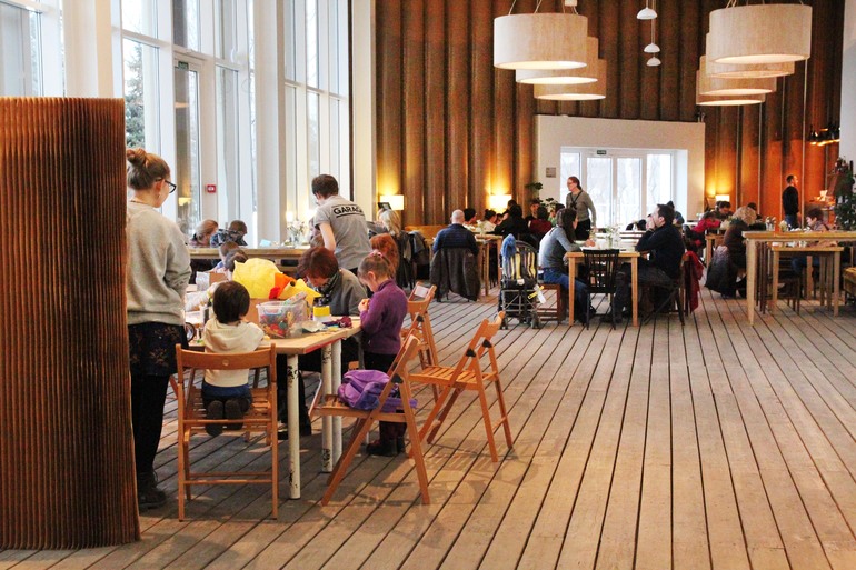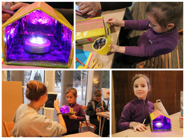 Попали мы туда совершенно случайно. Там работала мастерская и в этот день тема была - Световая инсталляция. Какое же совпадение, подумала я, ведь мы только пару-тройку часов назад наблюдали красивое световое шоу "Цирк света" в кафе Му-му, куда тоже попали случайно. День сложился очень удачно!