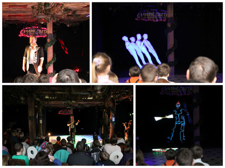 Ближе к 12 часам мы с Анастасией пошли в кафе Му-му на Фрунзенской. Попали на световое шоу "Цирк Света". Зрителей рассадили по местам... и началось представление. К слову, я не ожидала такого качества мероприятия бесплатно. Насте очень понравилось. Было много фокусов и различных световых штук))