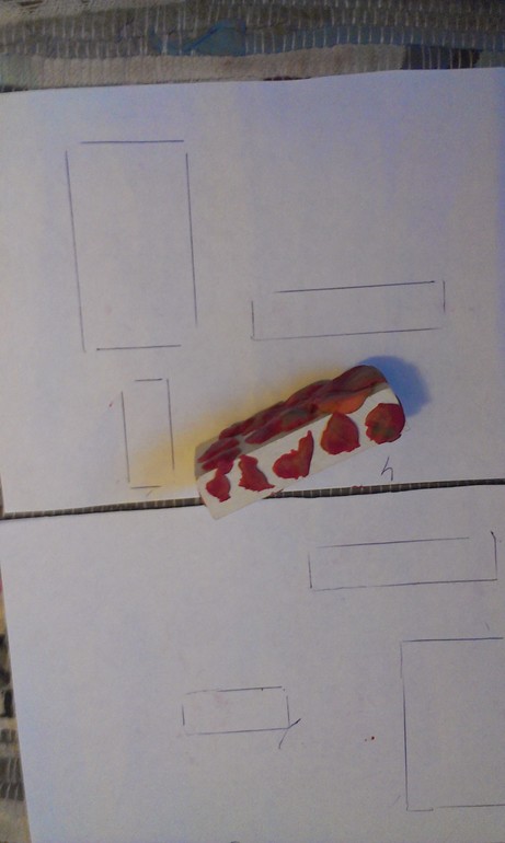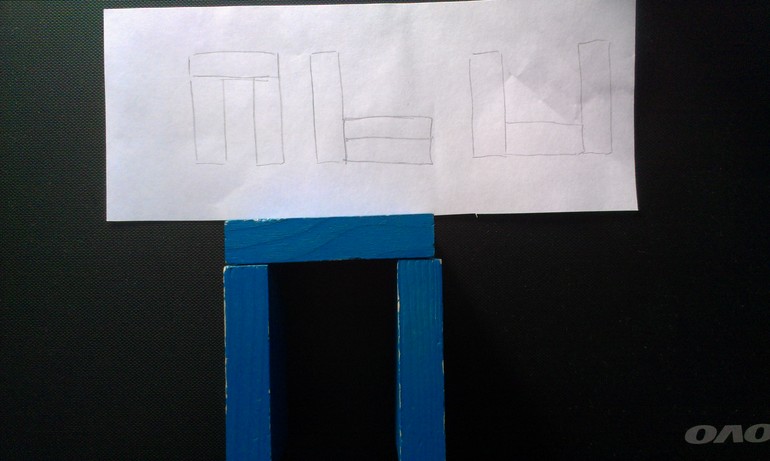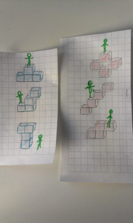4 листа с проекциями трех сторон кирпичика ,Стало понятно, после того, как Агния по своей инициативе облепила пластилином кирпичик и рассмотрела каждую сторону.