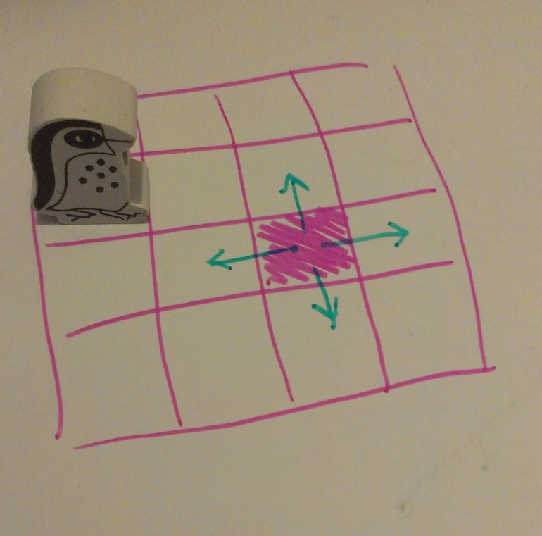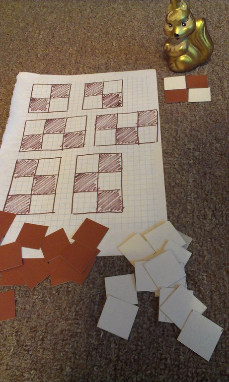 Собачка купила мебель в новый дом. Обезьянка купила такую же , помоги ей расставить как у собачки.Можно по клеточкам расставлять, посложнее, это фото давнишнее.Дрессированная птичка. Командуем ей-на одну клетку вверх, на две направо и т.д.