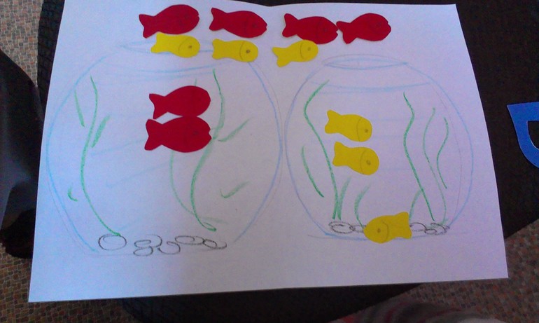 Сравнить количество путем составления пар. Понять,что количество предметов не зависит от их размера, например,больших рыбок может быть меньше,чем маленьких.