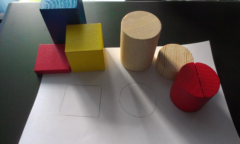Также с другими предметами, можно с тремя условиями- по форме, величине, цвету, материалу