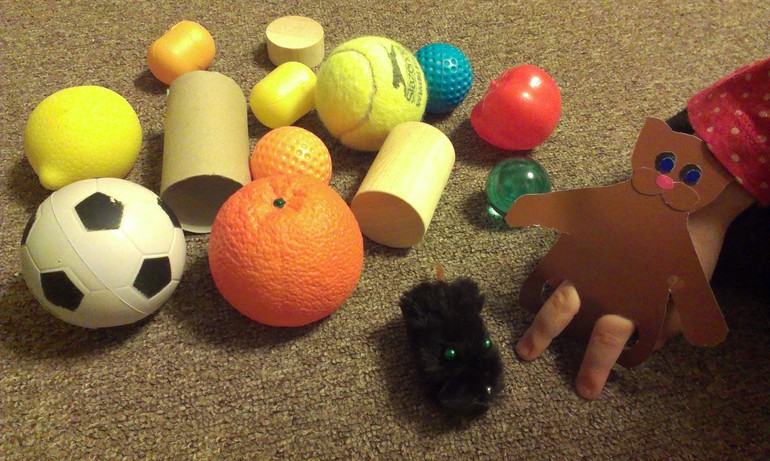 Играем в футбол, ворота из книг или кубиков. Что можно быстрее закатить в ворота?Почему?Что круглое, но не катится?