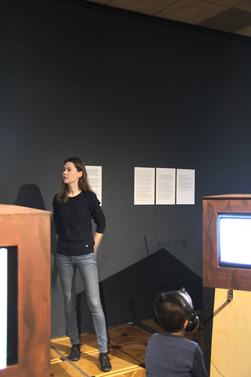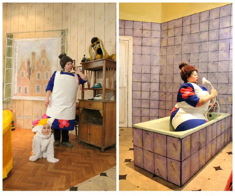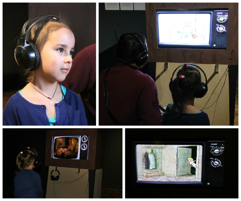 Настя смотрит мультфильмы и спектакль по РЕТРОтелевизору, а мы отправились на экскурсию по музею. Вела ее -Екатерина, очень милая девушка.