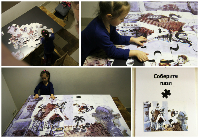 Под лестницей предлагалось собрать большой магнитный пазл: