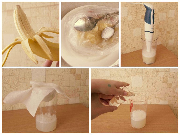 Для начала банан следует тщательно размять, а потом добавить соль, моющее средство в необходимом количестве. О том, что должно получиться читайте в блоге "Занимательная наука для детей"