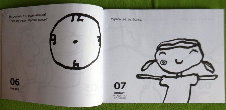 На 365 страницах ребенка ждут рисунки-каракули, которые нужно раскрасить и дорисовать, на каждый день года ему обеспечено интересное занятие, развивающее воображение и раскрывающее художественный потенциал.