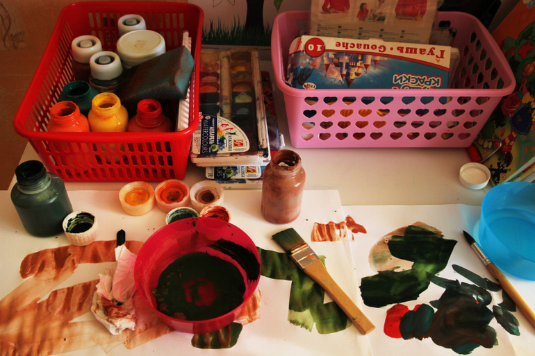 На следующий день я купила ватман. Намешала цвет и сделала фон будущей стенгазеты: