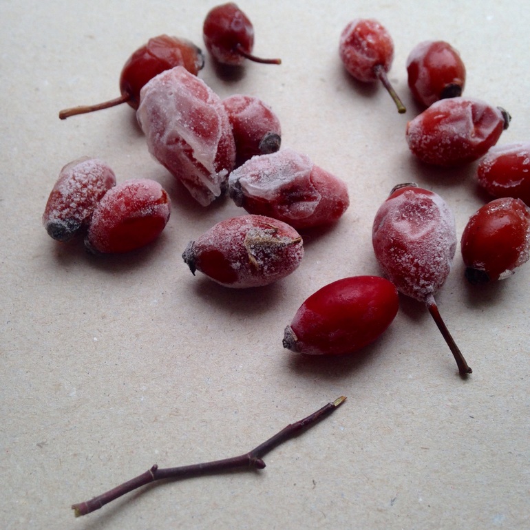 Потом варили компот из шиповника и придумалось им порисовать. На снегу выкладывали цветы: