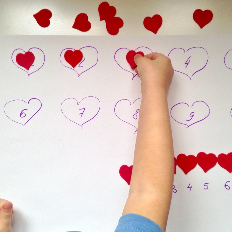 14 февраля играли с наклейками-сердцами. Нарисовала рамки для вклеивания в виде сердец с порядковым счетом.