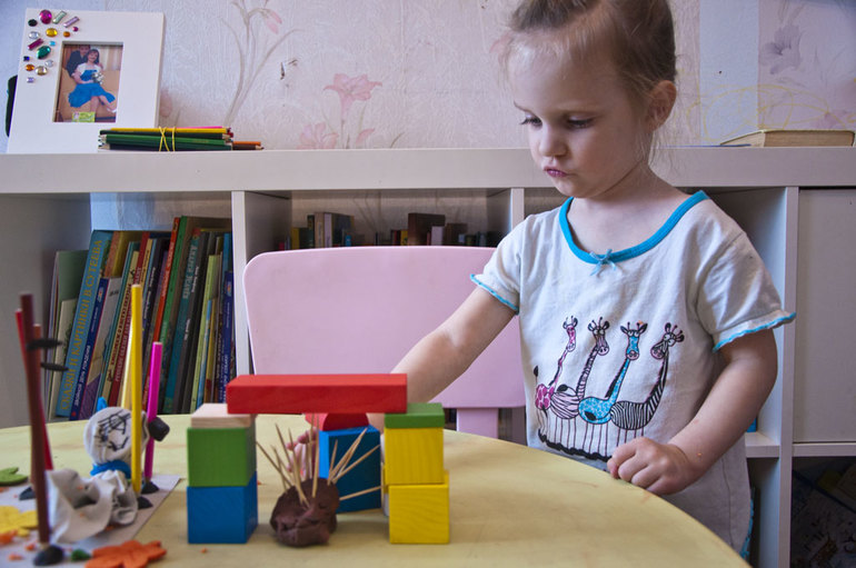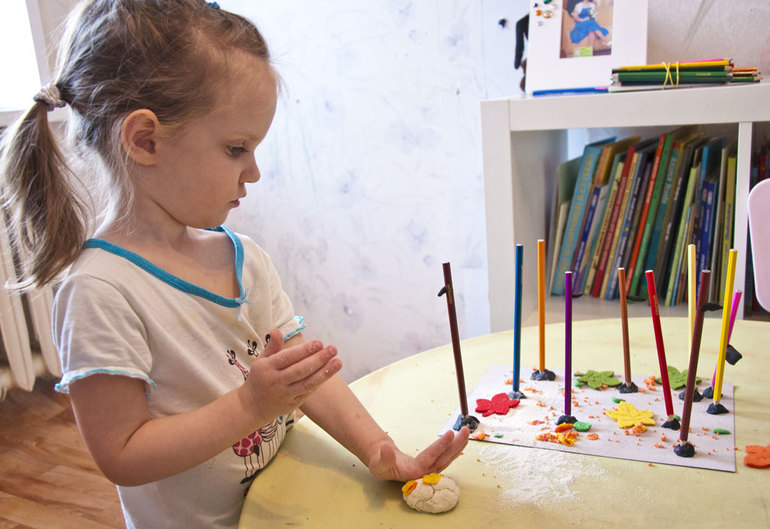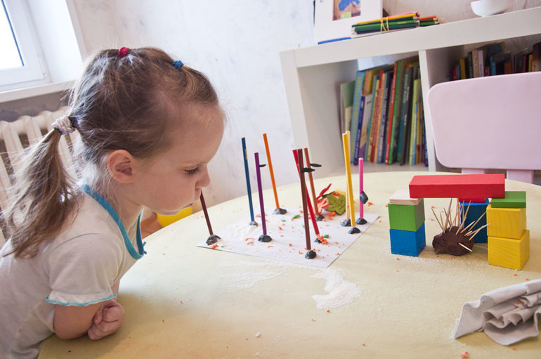 Лес Алиса полностью сделала сама из пластилина и карандашей: