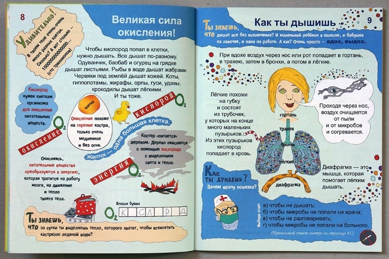 Еще одна книжка из этой серии - «Почему сердце стучит, а живот урчит?» Она поможет ребенку больше узнать о себе самом. Здесь также собрано множество любопытных фактов, заданий и, конечно же, экспериментов.