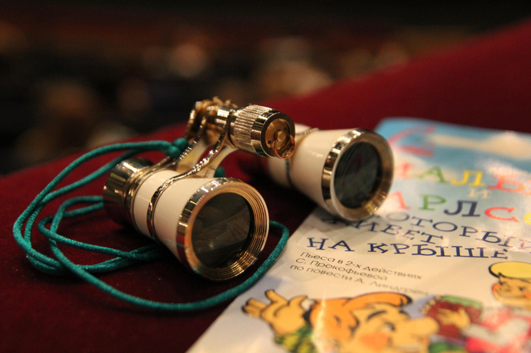 Взяла бинокль в гардеробе, в подарок дали диск театра - красненькие коробочки на фото (СD - романсы, куплеты из разных спектаклей театра + реклама/скидка "Эвалар"