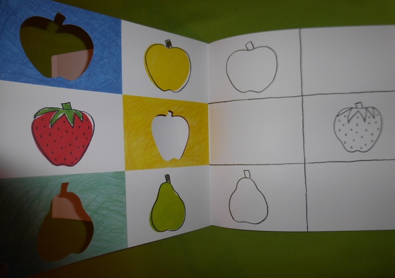 - рисунки раскрашены нарочито неаккуратно, видны отдельные карандашные штрихи и линии выходят за границы рисунка и если малыш выйдет за границы рисунка, то не расстроится, что у него что то не получилось.