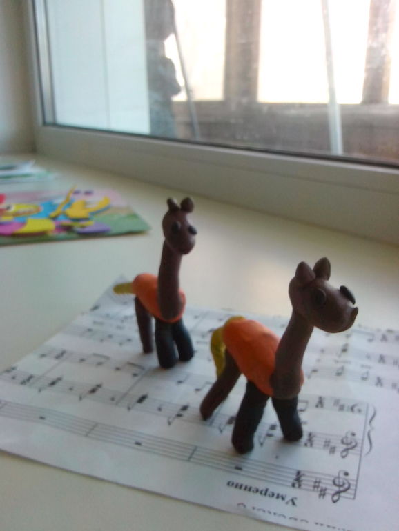 ТворчествоЛепили жирафа, на цвет не обращаем внимания), к началу лепки оказалось, что мало оранжевого пластелина, поэтому вот так вышли из ситуации). По-моему на жирафа не очень похоже, но доча очень старалась