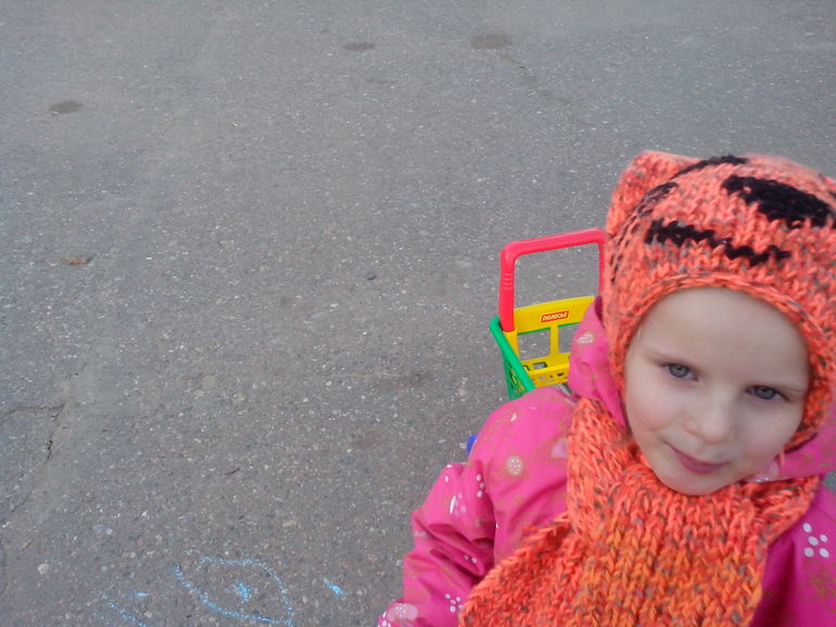 Ну а здесь тележка с продуктами была благополучно заброшена, так как появился сухой асфальт и мы вспомнили про мелки у мамы в сумке.