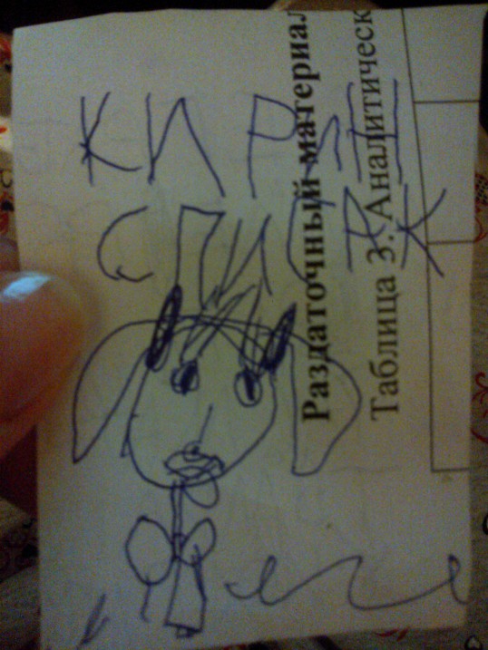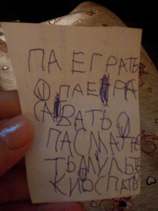 Сегодня сижу за компом, слышу Кира сама себе что-то диктует по слогам, поворачиваюсь: (дальше фото под кат)